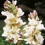 The tuberose available at Suttons and Thompson and Morgan is called the Pearl. This is a really enchantingly pretty plant producing very tall flower stems topped with the most pretty pearly white double flowers. Florists loved this one, and the blooms being fragrant very attractive. It will grow between 60 and 90 cm tall. It’s only available up until mid April so if you want to close this year, you really do need to order them now. You can’t come out a couple of inches deep and 8 inches apart but only after the danger of frost is passed. It will flower July and August.