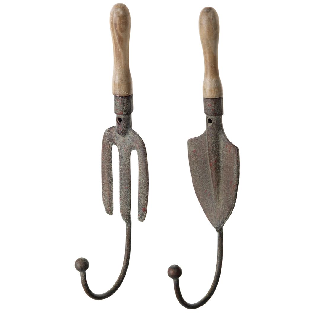 Perfect for use both indoors and outdoors, these sturdy metal hooks are quirkily crafted in the style of a garden fork and trowel.