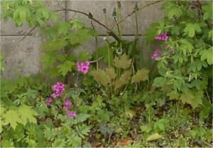 It grows along the wall in our allotment site and is currently showing pretty pink flowers.