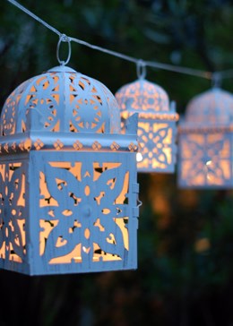 These painted metal lanterns have come straight from North Africa and, when you insert a lit tealight or candle they will cast off a softly patterned glow. They can be used indoors or out and come in three sizes. Measurements: Large height 30cm x width 16cm x depth 16cm. Medium height 24cm x width 12.5cm x depth 12.5cm Small height 17cm x width 10cm x depth 10cm Available in three sizes. Each size sold seperately.